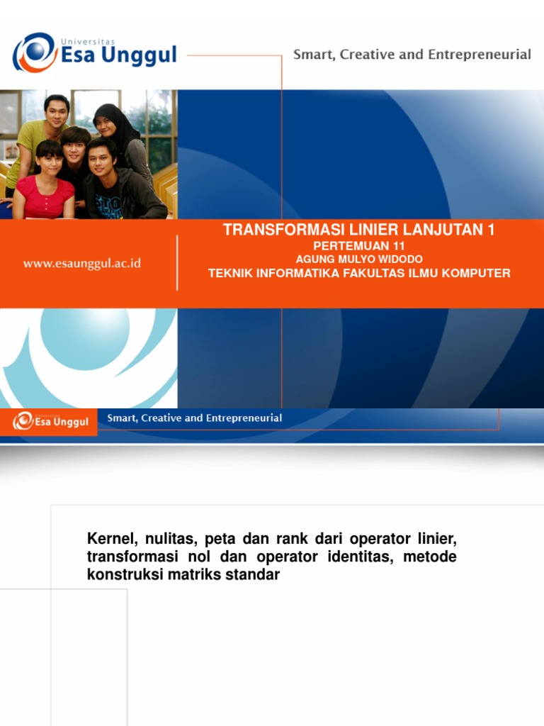 Aljabar linear elementer kita jumpai di perguruan tinggi, baik saat s1 ataupun s2.
