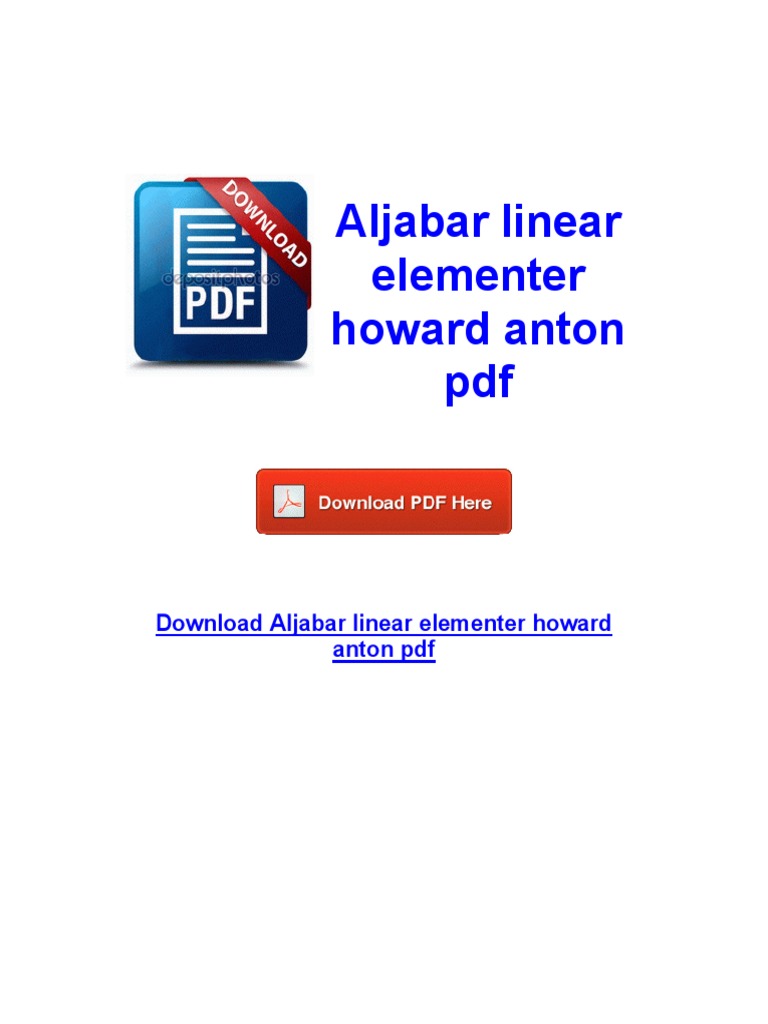 Download Buku Aljabar Linear Elementer Anton Rorres - Info ... from s1.studylibid.com Leon , s.j.( 2001 ). If a is any m x n matrix, then the transpose of a, denoted by at is defined to be the n x m matrix. Pdf form without charge to students at schools adopting the 11th edition of the text. Amalia sifitri, wibi hardani kode penulis penerbit tahun jumlah subyek 515.2 ant a anton, howard jakarta: Anton , h.( 1991) elementary linear algebra.john wiley and sons 2. 19 full pdfs related to this paper. Electric journal of linear algebra. Kunci jawaban howard anton aljabar linear howard anton pdf maret 2019 ruang vektor umum half personality angel surplus princess the mermaid complete.